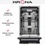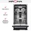 Посудомоечная машина KRONA WESPA 45 BI V2. Это полностью встраиваемая узкая модель шириной 44.8 см, глубиной 55 см и высотой 81.5 см, созданная для компактных кухонь. Передняя панель прячется под фасадом мебели, а видимая часть панели управления выполнена в черном цвете и оснащена LED-дисплеем. Такое решение обеспечивает единый стиль кухонного гарнитура и минималистичный внешний вид без лишних деталей.