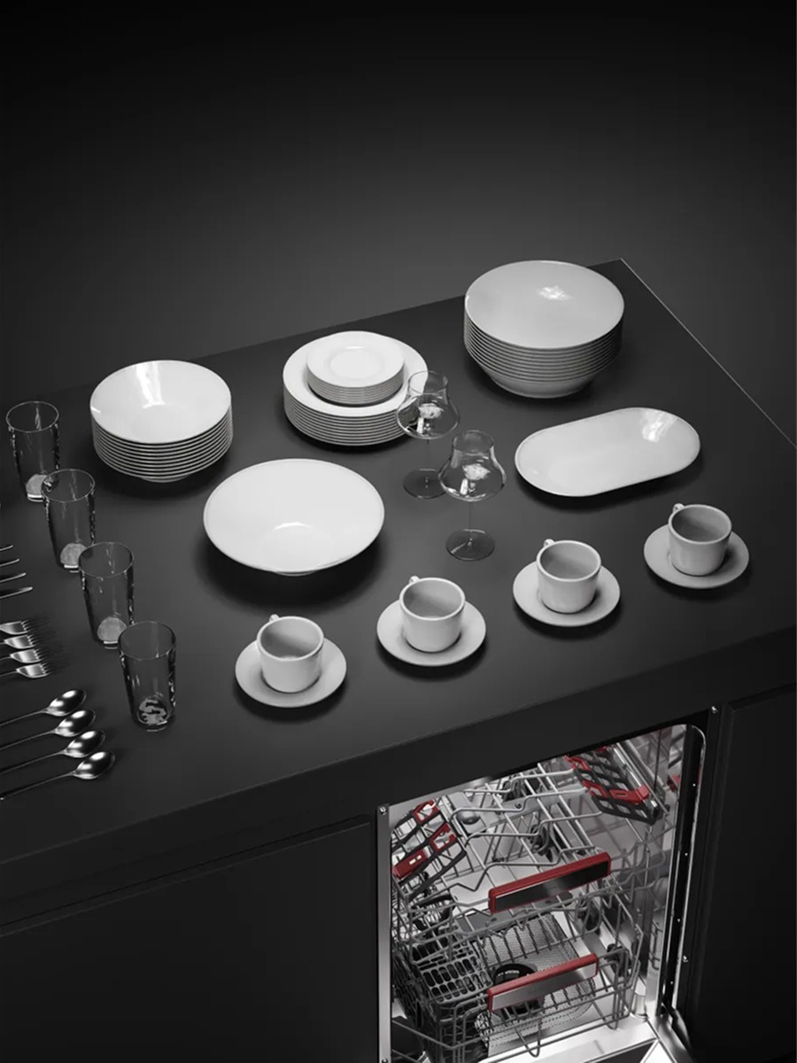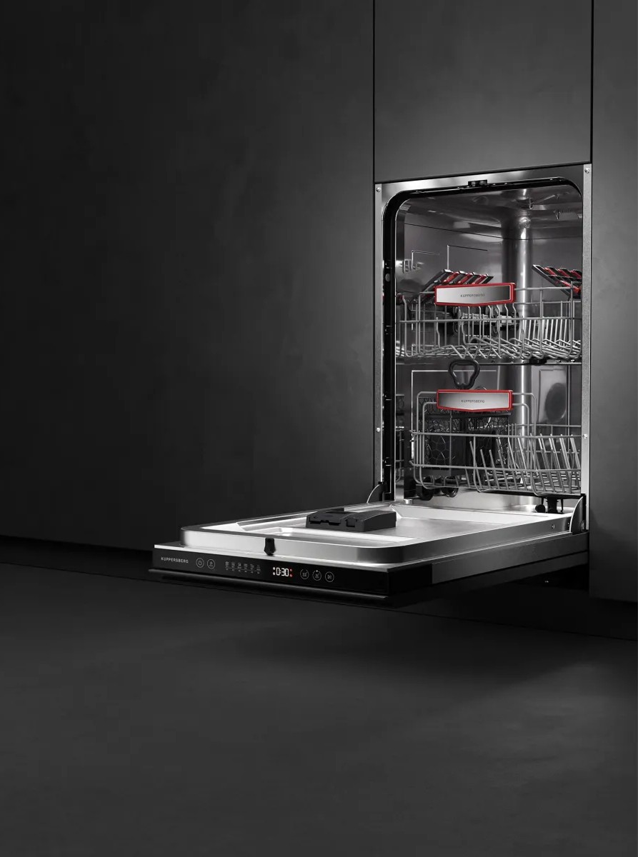 Встраиваемая модель Куперсберг отлично впишется в любой интерьер, главное — правильно выбрать место, чтобы подвести коммуникации. Устанавливается в нишу целиком, полностью закрывается декоративной панелью. Обратите внимание: в комплекте не идет фасад, его необходимо установить самостоятельно. Имеет уменьшенную ширину — благодаря этому поместится даже на очень маленькой кухне. В камеру можно загрузить ограниченное число комплектов: 10 шт. Комплектом считается набор посуды на одного человека, который нужен для полноценного приема пищи: глубокая и плоская тарелки, тарелка для салата, блюдце под чашку, сама чашка, ложка и вилка.