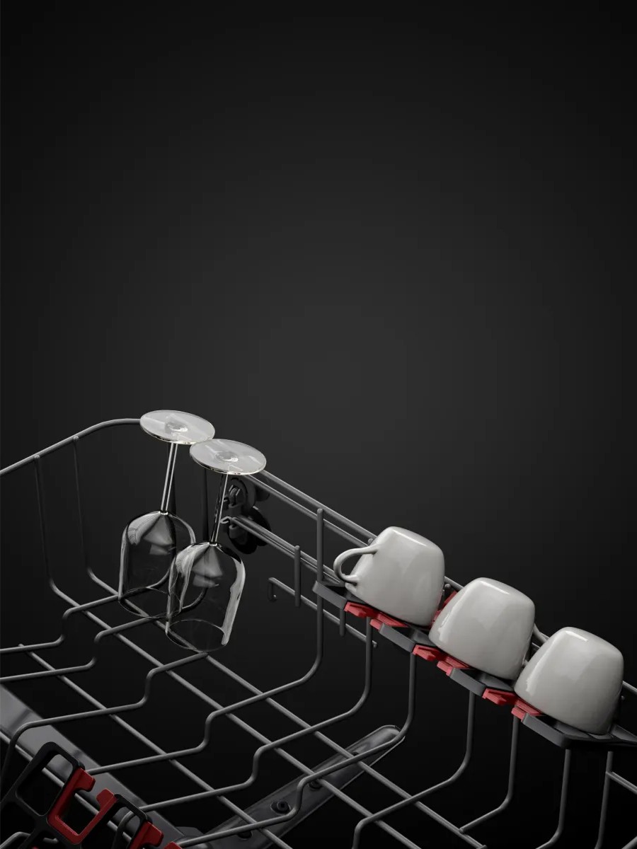 Для больших кружек, стаканов и бокалов производители предлагают оригинальные силиконовые и резиновые подставки-держатели в виде коврика с выступами-упорами, надежно фиксирующими чашку на месте и гарантирующими ее сохранность во время мойки. Подобные предметы также удобно размещаются под полочкой для столовых приборов или небольших чашек. Для того чтобы безопасно извлечь их из корзины, полочку достаточно откинуть. Верхняя корзина в большинстве современных посудомоечных машин регулируется по высоте, так что в ней найдется место для чашек и стаканов любой высоты. В моделях, где имеется третий дополнительный короб для столовых приборов, небольшие чашки можно без труда разместить в этом коробе.
