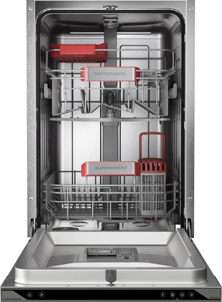 Встраиваемая модель Куперсберг отлично впишется в любой интерьер, главное — правильно выбрать место, чтобы подвести коммуникации. Устанавливается в нишу целиком, полностью закрывается декоративной панелью. Обратите внимание: в комплекте не идет фасад, его необходимо установить самостоятельно. Имеет уменьшенную ширину — благодаря этому поместится даже на очень маленькой кухне. В камеру можно загрузить ограниченное число комплектов: 10 шт. Комплектом считается набор посуды на одного человека, который нужен для полноценного приема пищи: глубокая и плоская тарелки, тарелка для салата, блюдце под чашку, сама чашка, ложка и вилка.