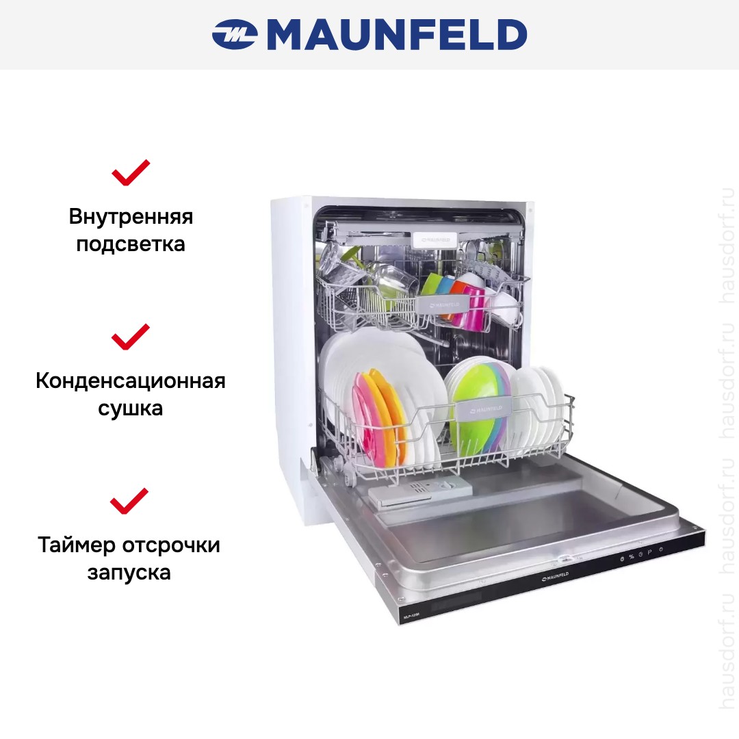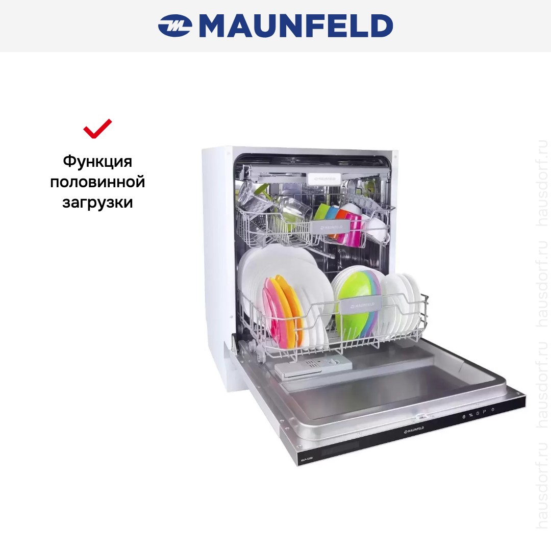 Посудомоечная машина Maunfeld MLP 12IM из нержавеющей стали с электронным типом управления, оснащенная защитой от протечек AquaStop. Вмещает 14 стандартных комплектов посуды и предлагает 9 стандартных программ. Ополаскивает приборы перед выбранным циклом, деликатно моет стекло, экономно справляется с небольшими загрязнениями или эффективно избавляется от сильных. Расходует мало воды, готова моментально приступить к работе. Удобное современное сенсорное управление с индикацией и дисплеем Cold White. Индикатор «Луч на полу» позволяет быстро понять, завершена ли мойка, не открывая дверцу.
