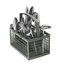 Корзина для столовых приборов достаточно высока, ввиду чего она устанавливается в нижнем коробе, где для нее предусматривается специальное место между разделителями для тарелок. Приборы в корзине могут размещаться как вниз, так и вверх рукоятками — это зависит от количества приборов и требований пользователя. Однако острые предметы — ножи или вилки — необходимо размещать острием вниз для предотвращения травм. Ножи рекомендуется размещать в корзинах с осторожностью, поскольку лезвия из керамики, например, могут затупиться. Чтобы избежать этого, следует использовать фирменные моющие средства и обязательно располагать ножи по отдельности, чтобы они не соприкасались с другими предметами.