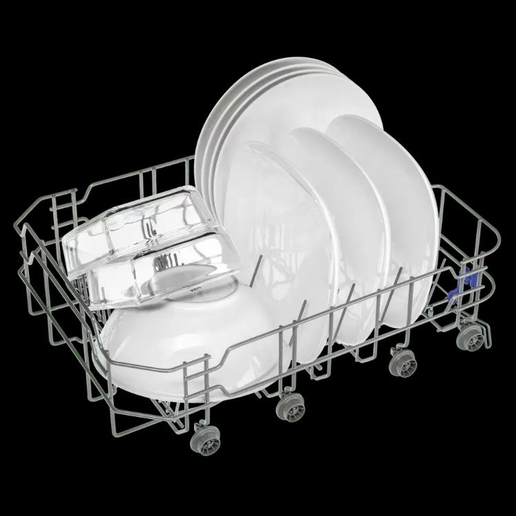 Встраиваемая модель Маунфилд отлично впишется в любой интерьер, главное — правильно выбрать место, чтобы подвести коммуникации. Устанавливается в нишу целиком, полностью закрывается декоративной панелью. Имеет уменьшенную ширину — благодаря этому поместится даже на очень маленькой кухне. В камеру можно загрузить ограниченное число комплектов: 9 шт. Комплектом считается набор посуды на одного человека, который нужен для полноценного приема пищи: глубокая и плоская тарелки, тарелка для салата, блюдце под чашку, сама чашка, ложка и вилка.