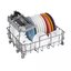 Корзина для столовых приборов достаточно высока, ввиду чего она устанавливается в нижнем коробе, где для нее предусматривается специальное место между разделителями для тарелок. Приборы в корзине могут размещаться как вниз, так и вверх рукоятками — это зависит от количества приборов и требований пользователя. Однако острые предметы — ножи или вилки — необходимо размещать острием вниз для предотвращения травм. Ножи рекомендуется размещать в корзинах с осторожностью, поскольку лезвия из керамики, например, могут затупиться. Чтобы избежать этого, следует использовать фирменные моющие средства и обязательно располагать ножи по отдельности, чтобы они не соприкасались с другими предметами.