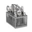 Корзина для столовых приборов достаточно высока, ввиду чего она устанавливается в нижнем коробе, где для нее предусматривается специальное место между разделителями для тарелок. Приборы в корзине могут размещаться как вниз, так и вверх рукоятками — это зависит от количества приборов и требований пользователя. Однако острые предметы — ножи или вилки — необходимо размещать острием вниз для предотвращения травм. Ножи рекомендуется размещать в корзинах с осторожностью, поскольку лезвия из керамики, например, могут затупиться. Чтобы избежать этого, следует использовать фирменные моющие средства и обязательно располагать ножи по отдельности, чтобы они не соприкасались с другими предметами.
