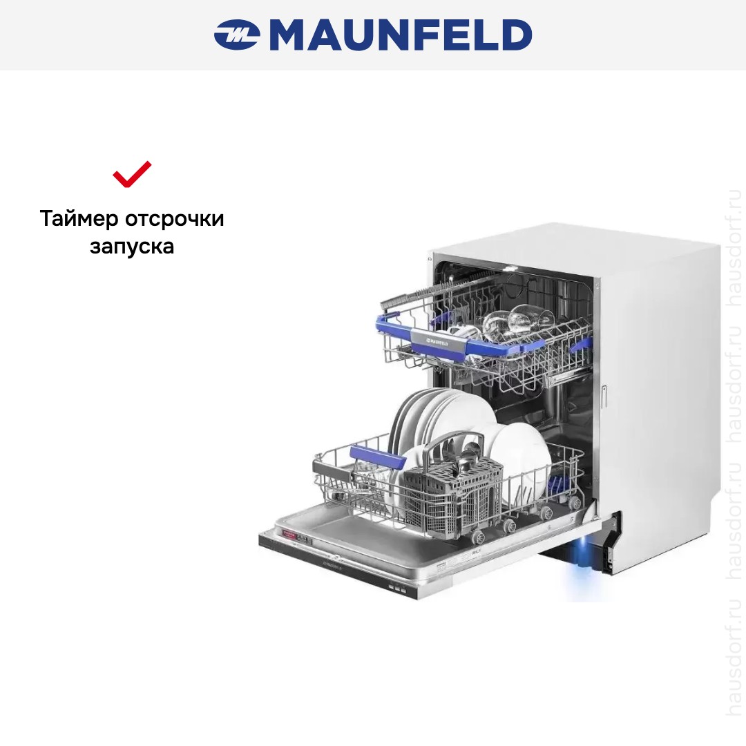 Посудомоечная машина Maunfeld MLP 12i Light Beam — встраиваемая полноразмерная модель, созданная для стильной и аккуратной интеграции под фасад кухни. Она занимает стандартное место и полностью прячется за дверцей мебельного модуля, сохраняя единый интерьерный вид. Панель управления выполнена в черном цвете, что гармонично смотрится с большинством современных решений и не бросается в глаза при открытой дверце.