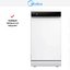 Посудомоечная машина Midea MFD45S510WI представлена в формате отдельностоящего узкого прибора, который легко встраивается в компактную кухню. Корпус выполнен в белом цвете с контрастной чёрной панелью управления, что подчёркивает современный и аккуратный облик изделия. Габариты 84.5×44.8×60 см делают агрегат оптимальным решением для малогабаритных помещений, а вес 40 кг обеспечивает простоту установки и стабильность при работе.