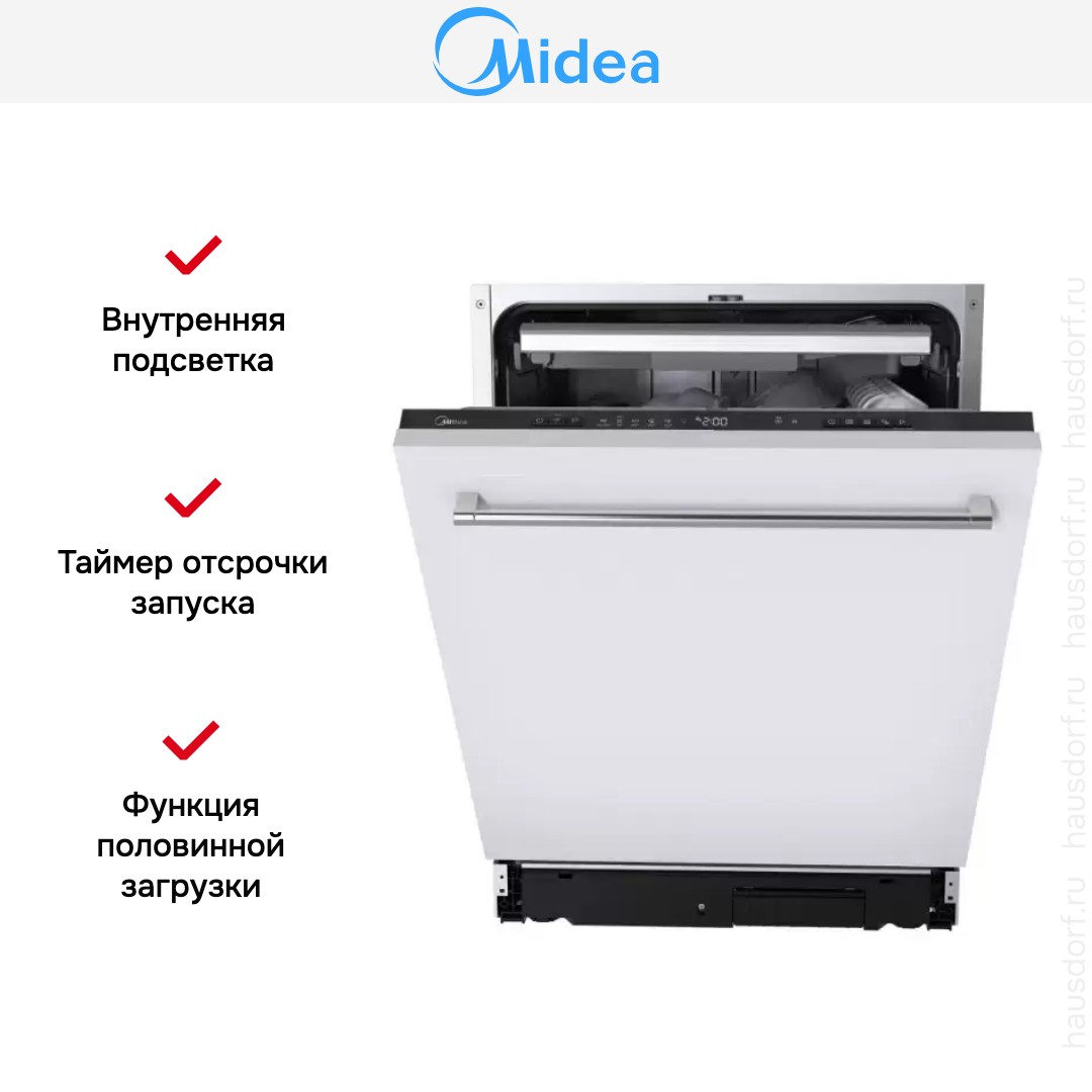 Посудомоечная машина Midea MID60S340I предлагает полный набор функций для удобства современной кухни. Это полностью встраиваемая полноразмерная модель, которая прячется за вашим фасадом и сохраняет цельный дизайн гарнитура. Черная скрытая панель управления делает внешний вид аккуратным, а цифровой дисплей и сенсорные кнопки упрощают взаимодействие.