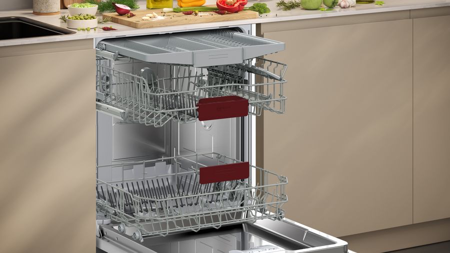 Как правило, полки для столовых приборов находятся в верхней корзине — таким образом, чтобы под ними можно было расположить, например, небольшие чашки. Часто полки оснащаются специальными разделителями, которые позволяют зафиксировать любой предмет, чтобы он не мог случайно сдвинуться с перекрыть доступ к соседним. В ряде моделей для столовых приборов предусматриваются большие полки, которые размещаются на третьем уровне. Такая конструкция считается оптимальной, так как освобождается место в корзинах для более крупных предметов. Такие полки достигают в высоту 5 см, так что на них можно размещать не только обычные ножи, ложки или вилки, но и более объемные половники, шумовки, лопатки, терки и другую подобную утварь.