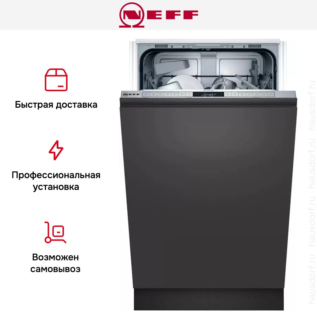 Посудомоечная машина Neff S855EKX14E — встраиваемая полностью, узкая модель с глубиной 55 см и широтой 44.8 см, создана для аккуратной интеграции в кухонный гарнитур. Высота корпуса варьируется от 81.5 до 87.5 см, что позволяет подогнать прибор под навес вашего фасада и сохранить единую линию фронта. Панель управления скрытая и серебристая, поэтому внешне остаётся только ровный фасад вашей кухни, а цифровой дисплей подскажет оставшееся время и выбранные опции. Внутренняя камера из нержавеющей стали обеспечивает долговечность и устойчивость к пятнам, а металлическая пластина в комплекте защищает столешницу от пара.