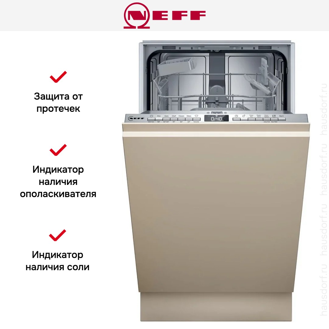 Посудомоечная машина Neff S855EKX33E — полностью встраиваемая узкая модель, созданная для экономии места и аккуратной интеграции под фасад вашей кухни. Ее компактные габариты 81.5×44.8×55 см позволяют установить прибор в нишу стандартного ряда, а небольшой фронт оставляет место для удобных рабочих зон. Поставляемая металлическая пластина защищает столешницу от пара при установке под кухонной рабочей панелью.