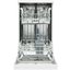 Белая отдельностоящая посудомоечная машина с электронным управлением: на панели есть кнопки выбора программ и индикаторы наличия соли, ополаскивателя и текущего режима. Благодаря сушке Natural/Active на посуде не остаются подтеки.