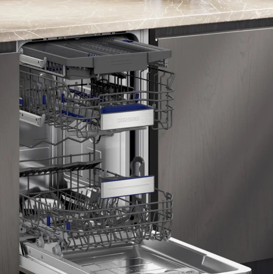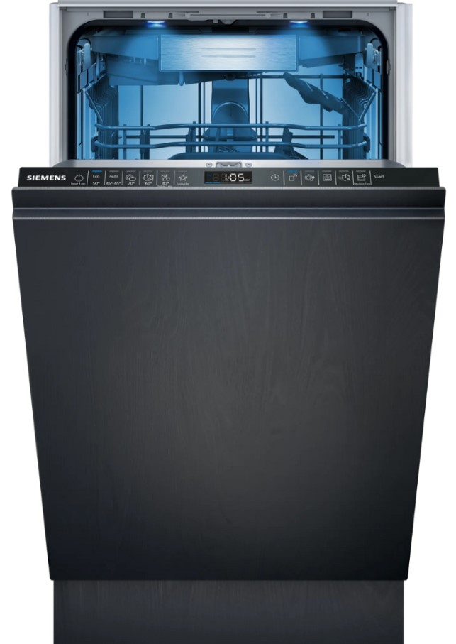 Встраиваемая модель Сименс отлично впишется в любой интерьер, главное — правильно выбрать место, чтобы подвести коммуникации. Устанавливается в нишу целиком, полностью закрывается декоративной панелью. Обратите внимание: в комплекте не идет фасад, его необходимо установить самостоятельно. Имеет уменьшенную ширину — благодаря этому поместится даже на очень маленькой кухне. В камеру можно загрузить ограниченное число комплектов: 10 шт. Комплектом считается набор посуды на одного человека, который нужен для полноценного приема пищи: глубокая и плоская тарелки, тарелка для салата, блюдце под чашку, сама чашка, ложка и вилка.