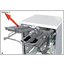 Поскольку декоративная пластина может изготавливаться из различных материалов, нередко после ее установки на фасад посудомойки требуется дополнительная регулировка, которая направлена на то, чтобы дверца хорошо закрывалась и плотно прилегала к корпусу. Механизм открывания дверцы включает две пружины, от которых отходят тросики. Тросики в свою очередь крепятся к двум винтам. Балансировка петель сводится к изменению натяжения этих тросиков путем вращения винтов: оно должно быть одинаковым с обеих сторон дверцы, которая в итоге должна оставаться открытой под собственной тяжестью.