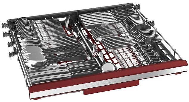Как правило, полки для столовых приборов находятся в верхней корзине — таким образом, чтобы под ними можно было расположить, например, небольшие чашки. Часто полки оснащаются специальными разделителями, которые позволяют зафиксировать любой предмет, чтобы он не мог случайно сдвинуться с перекрыть доступ к соседним. В ряде моделей для столовых приборов предусматриваются большие полки, которые размещаются на третьем уровне. Такая конструкция считается оптимальной, так как освобождается место в корзинах для более крупных предметов. Такие полки достигают в высоту 5 см, так что на них можно размещать не только обычные ножи, ложки или вилки, но и более объемные половники, шумовки, лопатки, терки и другую подобную утварь.