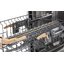 Корзина для столовых приборов достаточно высока, ввиду чего она устанавливается в нижнем коробе, где для нее предусматривается специальное место между разделителями для тарелок. Приборы в корзине могут размещаться как вниз, так и вверх рукоятками — это зависит от количества приборов и требований пользователя. Однако острые предметы — ножи или вилки — необходимо размещать острием вниз для предотвращения травм. Ножи рекомендуется размещать в корзинах с осторожностью, поскольку лезвия из керамики, например, могут затупиться. Чтобы избежать этого, следует использовать фирменные моющие средства и обязательно располагать ножи по отдельности, чтобы они не соприкасались с другими предметами.