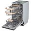 Узкие посудомоечные машины отличает ширина от 44,5 до 45 см при стандартных высоте и глубине и, соответственно, меньшая вместимость, не превышающая 10 комплектов посуды. Обычно это приборы встраиваемого типа, которые легко устанавливаются в узкую мебельную тумбу. Компактные устройства значительно меньше полноразмерных по высоте, а по своей ширине практически от них не отличаются — она составляет от 55 до 60 см. Вместимость подобных небольших машин встраиваемого и отдельно стоящего типа — 4-6 комплектов посуды.