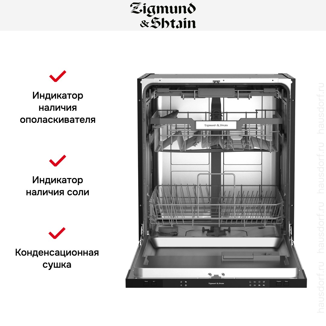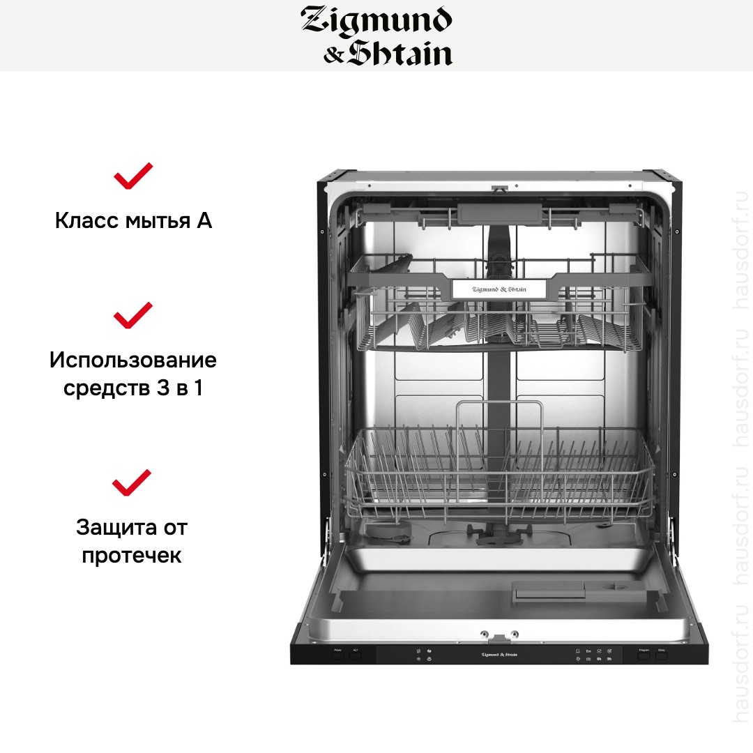 Встраиваемая модель Зигмунд Штайн отлично впишется в любой интерьер, главное — правильно выбрать место, чтобы подвести коммуникации. Устанавливается в нишу целиком, полностью закрывается декоративной панелью. Обратите внимание: в комплекте не идет фасад, его необходимо установить самостоятельно. Имеет стандартные размеры, поэтому может не поместиться на очень маленькой кухне. В камеру можно загрузить ограниченное число комплектов: 14 шт. Комплектом считается набор посуды на одного человека, который нужен для полноценного приема пищи: глубокая и плоская тарелки, тарелка для салата, блюдце под чашку, сама чашка, ложка и вилка.