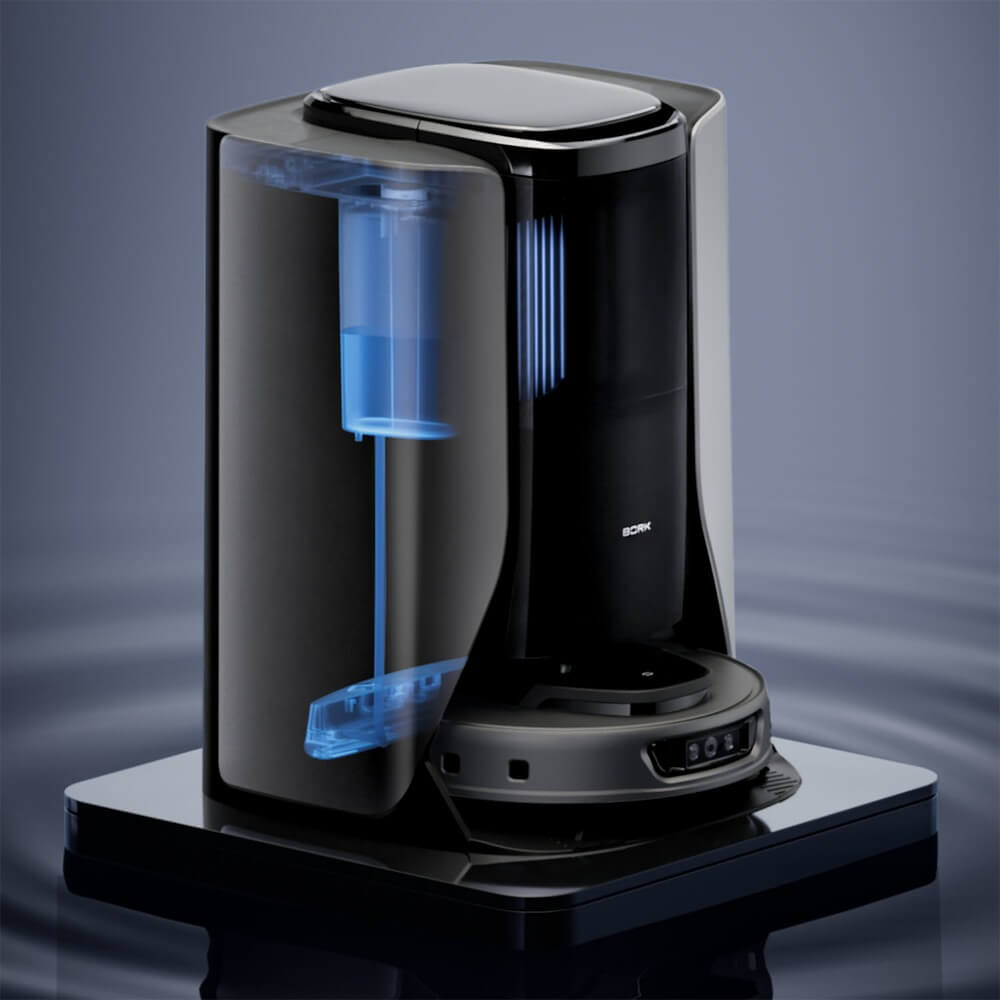 Робот-пылесос Bork V831 для сухой и влажной уборки — уникальная модель, способная самостоятельно сбрасывать пыль в специальный контейнер на зарядной станции. Объем пылесборника в корпусе пылесоса составляет 3 литра. Прибор диаметром 36 см и высотой 10 см способен проникать под предметы мебели: он очищает все виды напольных покрытий, а для очистки ковров его можно настроить на длину ворса. Площадь уборки на одной подзарядке составляет 260 кв.м. Датчик LiDAR и система камер для обхода препятствий предохраняет устройство от застревания, а мебель — от ударов. Пылесос оснащен двумя фильтрами —моторного отсека для защиты двигателя и тонкой очистки для предотвращения попадания пыли в воздух. Время начала уборки можно запрограммировать заранее. Пылесос управляется с мобильных устройства через специальное приложение.