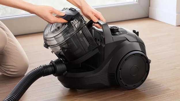 Пылесосы с контейнером-пылесборником позволяют уловить до 99% всех загрязнений, при этом интенсивность всасывания будет одинаковой независимо от заполнения контейнера. Пластиковый контейнер не требует замены, легко снимается для очистки, его можно мыть под струей воды после каждой уборки.
