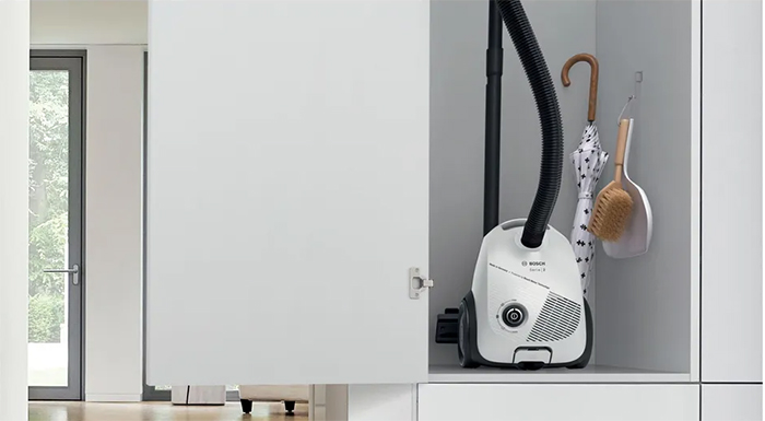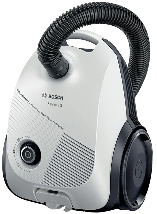 Пылесос Bosch BGLS2WH1H имеет стандартную конфигурацию — корпус на колесах, крепящийся к нему шланг с трубками-удлинителями и насадками. Данная модель рассчитана только на сухую уборку, которой достаточно для большинства пользователей. Мощный поток воздуха позволяет быстро всасывать как мелкие, так и крупные частицы, волосы и шерсть. Основной цвет прибора — белый. Пылесборник-мешок — привычный вариант, с которым легко работать, можно не беспокоиться о чрезмерном расходе электроэнергии. Он тщательно запирает внутри крупную пыль, но может незначительно пропускает очень мелкие частицы. Объем заполнения пылесборника — 3.5 л.