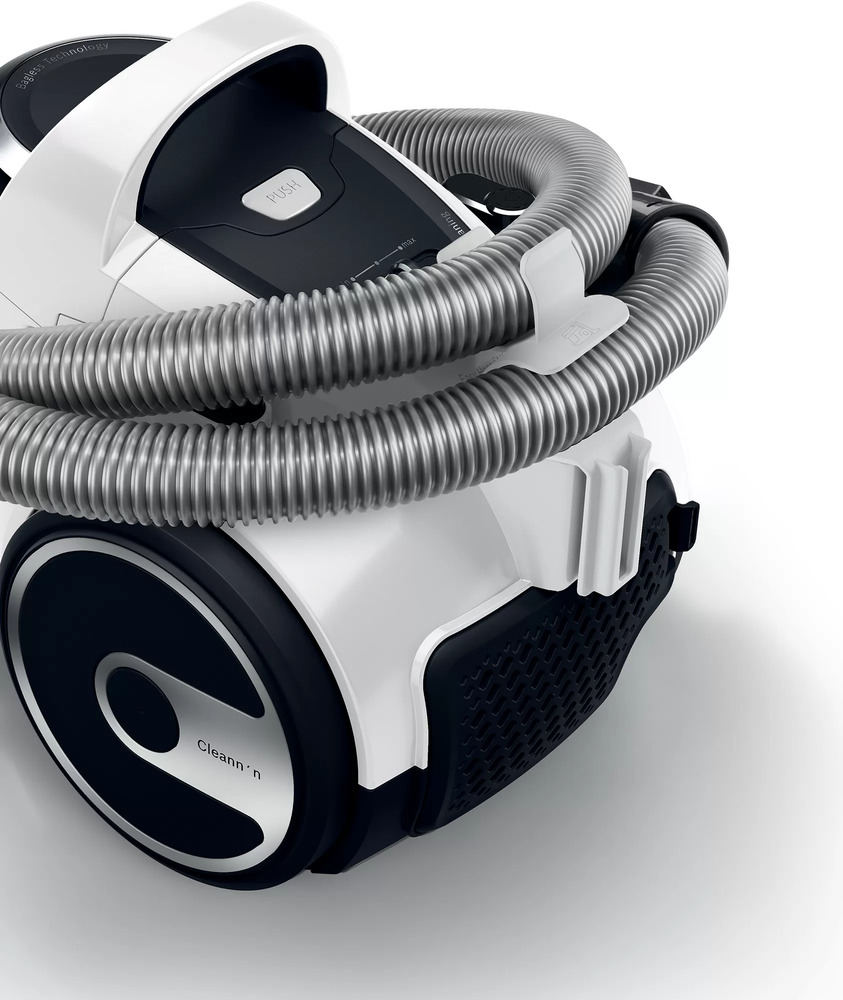 Прибор питается от электросети, поэтому проблем с внезапным отключением от недостатка заряда не возникнет. Предусмотрена удобная система парковки — горизонтальная с которой пылесос занимает меньше места.