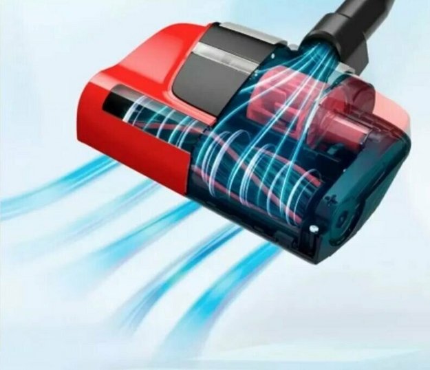 Шнур питания автоматически сматывается по завершении уборки. Для удлинения расстояния от корпуса до насадки используется специальная трубка, в данном случае — телескопическая.