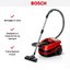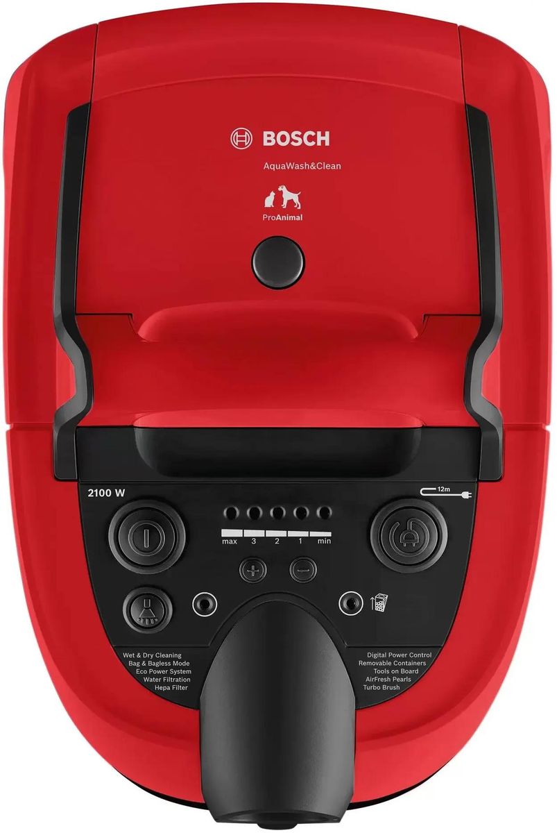 Пылесос Bosch BWD421PET имеет стандартную конфигурацию — корпус на колесах, крепящийся к нему шланг с трубками-удлинителями и насадками. Данная модель рассчитана на сухую и влажную уборку — удобный многофункциональный вариант для семей с детьми, владельцев животных, любителей растений и просто для тех, кто хочет без особых усилий поддерживать дома идеальную чистоту. Основной цвет прибора — красный. Пылесборник-мешок — привычный вариант, с которым легко работать, можно не беспокоиться о чрезмерном расходе электроэнергии. Он тщательно запирает внутри крупную пыль, но может незначительно пропускает очень мелкие частицы. Объем заполнения пылесборника — 1.5 л.