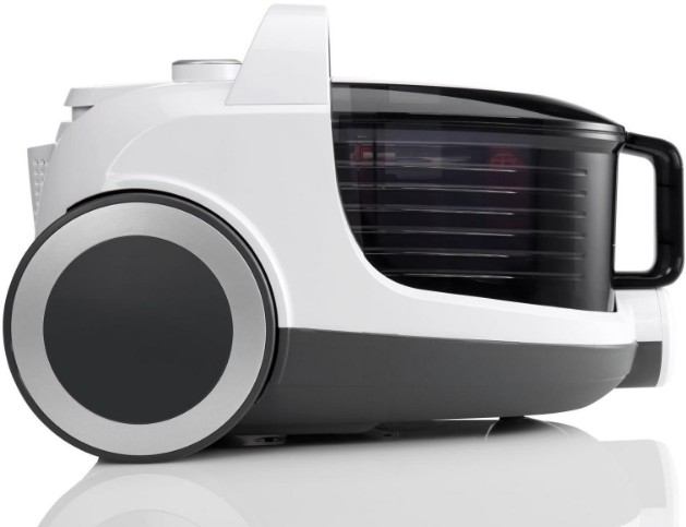 Циклонный фильтр — это усовершенствованный контейнер. Имеет форму обрезанного конуса — благодаря такому устройству воздух двигается циклически, заставляя мусор оседать внизу емкости за счет центробежной силы. Уже очищенный, воздушный поток выходит из пылесоса обратно. Обычно такая форма пылесборника соседствует с несколькими фильтрами, в том числе HEPA.