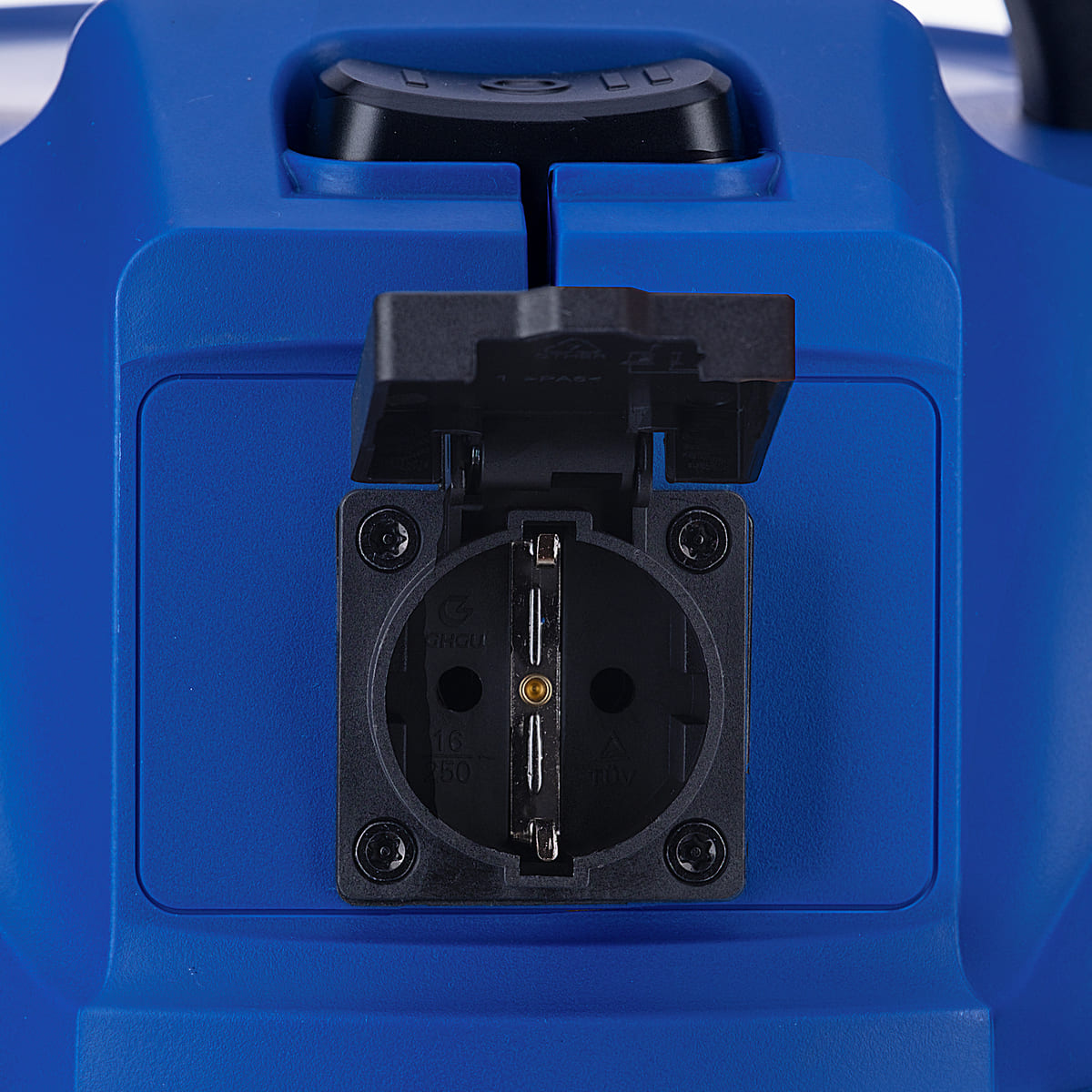 Управление мощностью на корпусе пылесоса производится при помощи поворотного переключателя или кнопок с обозначениями «+» и «-». Расположение управляющих элементов на корпусе — особенность напольных пылесосов: кнопки на них достаточно велики, чтобы нажимать их можно было не только рукой, но и ногой.