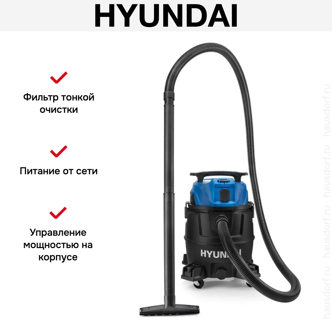 Пылесос Hyundai HYV-3013 выполнен в строгом черном корпусе и сочетает универсальность сухой и влажной уборки с понятным набором функций. Дизайн ориентирован на практичность: лаконичные линии, матовая поверхность и аккуратные хромированные вставки создают сдержанный и долговечный образ. Компактные габариты 38×40×56 см и вес 9 кг позволяют легко перемещать устройство по дому и хранить его даже в небольшом шкафу. Черный цвет маскирует следы эксплуатации и делает аппарат уместным в любом интерьере, от минимализма до классики.