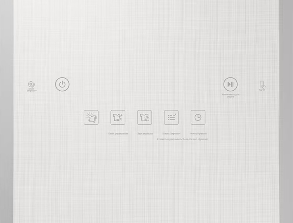Электронная панель управления с сенсорными переключателями обычно находится на двери, имеет понятный символьный или текстовый дисплей. Во втором случае выбранные режимы обозначаются словами.