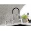 Специальная насадка позволяет выдвинуть излив как маленький шланг и направить струю в слишком высокую кастрюлю, которая не помещается под стационарным краном, на овощи в раковине, на загрязнения в неудобных уголках мойки, которые нужно удалить и т.д. Благодаря особой конструкции вы можете также направить воду из раковины в ванну или из одной чаши мойки в другую одним поворотом крана в нужную сторону. Дополнительная деталь, которая повышает комфорт использования, — аэратор. Он делает поток воды мягче, насыщая его кислородом, таким образом дополнительно уменьшая ее расход: объем струи увеличивается за счет воздуха, а не за счет повышения напора из водопровода. К этой модели можно подключить фильтр для питьевой воды.