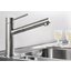 Специальная насадка позволяет выдвинуть излив как маленький шланг и направить струю в слишком высокую кастрюлю, которая не помещается под стационарным краном, на овощи в раковине, на загрязнения в неудобных уголках мойки, которые нужно удалить и т.д. Благодаря особой конструкции вы можете также направить воду из раковины в ванну или из одной чаши мойки в другую одним поворотом крана в нужную сторону. Дополнительная деталь, которая повышает комфорт использования, — аэратор. Он делает поток воды мягче, насыщая его кислородом, таким образом дополнительно уменьшая ее расход: объем струи увеличивается за счет воздуха, а не за счет повышения напора из водопровода.