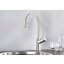 Специальная насадка позволяет выдвинуть излив как маленький шланг и направить струю в слишком высокую кастрюлю, которая не помещается под стационарным краном, на овощи в раковине, на загрязнения в неудобных уголках мойки, которые нужно удалить и т.д. Благодаря особой конструкции вы можете также направить воду из раковины в ванну или из одной чаши мойки в другую одним поворотом крана в нужную сторону. Дополнительная деталь, которая повышает комфорт использования, — аэратор. Он делает поток воды мягче, насыщая его кислородом, таким образом дополнительно уменьшая ее расход: объем струи увеличивается за счет воздуха, а не за счет повышения напора из водопровода.