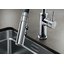Внутри крана помещается шланг, который можно растянуть, чтобы достать струей воды до второй чаши мойки или тщательно сполоснуть посуду.