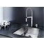 Внутри крана помещается шланг, который можно растянуть, чтобы достать струей воды до второй чаши мойки или тщательно сполоснуть посуду.
