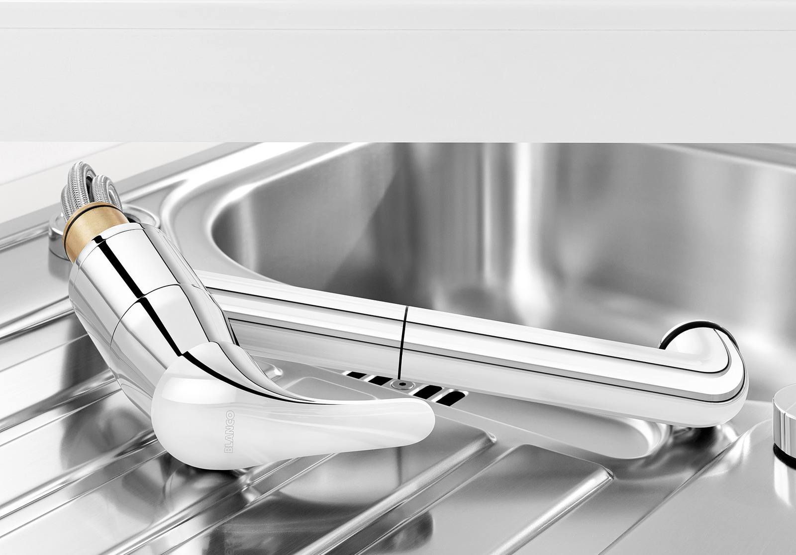 Специальная насадка позволяет выдвинуть излив как маленький шланг и направить струю в слишком высокую кастрюлю, которая не помещается под стационарным краном, на овощи в раковине, на загрязнения в неудобных уголках мойки, которые нужно удалить и т.д. Благодаря особой конструкции вы можете также направить воду из раковины в ванну или из одной чаши мойки в другую одним поворотом крана в нужную сторону.