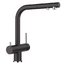 Рычаг для включения фильтрованной воды применяется в современных комбинированных смесителях, где из одного и того же излива подается и водопроводная, и питьевая вода. Такие смесители типа «два в одном» отличаются от обычных тем, что имеют не два подключения, а три, где третье соединяет смеситель с фильтром. Очищенная вода подается по изолированной трубке, проходящей внутри излива. Для удаления накипи, солей металлов, микроорганизмов и прочих вредных примесей могут применяться различные типы фильтров. Проточные фильтры устанавливаются под мойкой и включают несколько картриджей, которые необходимо менять по мере использования. С их помощью можно избавиться от таких примесей, как железо, хлор и многие другие. Устройства с системой обратного осмоса оснащаются диффузором, включающим картриджи для предварительной очистки и осмотическую мембрану, задерживающую практически все вредные примеси.