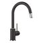 Однорычажный привод обеспечивает простое и интуитивное управление потоком и температурой воды. Внутри установлен керамический картридж, который гарантирует длительную бесперебойную работу без протечек и плавный ход рукояти. Высота излива 20 см дает достаточный зазор для крупной посуды, а длина 18,6 см обеспечивает удобный доступ к мойке при мытье и наполнении емкостей. Выдвижной излив расширяет зону применения и позволяет направлять поток прямо в глубокие элементы посуды или в дальнюю часть раковины.