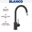 Смеситель Blanco Mida S представляет собой стильный кухонный кран в цвете антрацит с элегантной хромовой вставкой, которая подчеркивает современную эстетику изделия. Его внешность выполнена в сдержанной гамме, что делает прибор универсальным решением для любой кухни. Матовая фактура и ровные линии создают ощущение премиального продукта, сохраняя при этом практичность в ежедневном использовании.