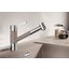 Внутри крана помещается шланг, который можно растянуть, чтобы достать струей воды до второй чаши мойки или тщательно сполоснуть посуду.