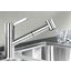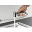 Внутри крана помещается шланг, который можно растянуть, чтобы достать струей воды до второй чаши мойки или тщательно сполоснуть посуду.