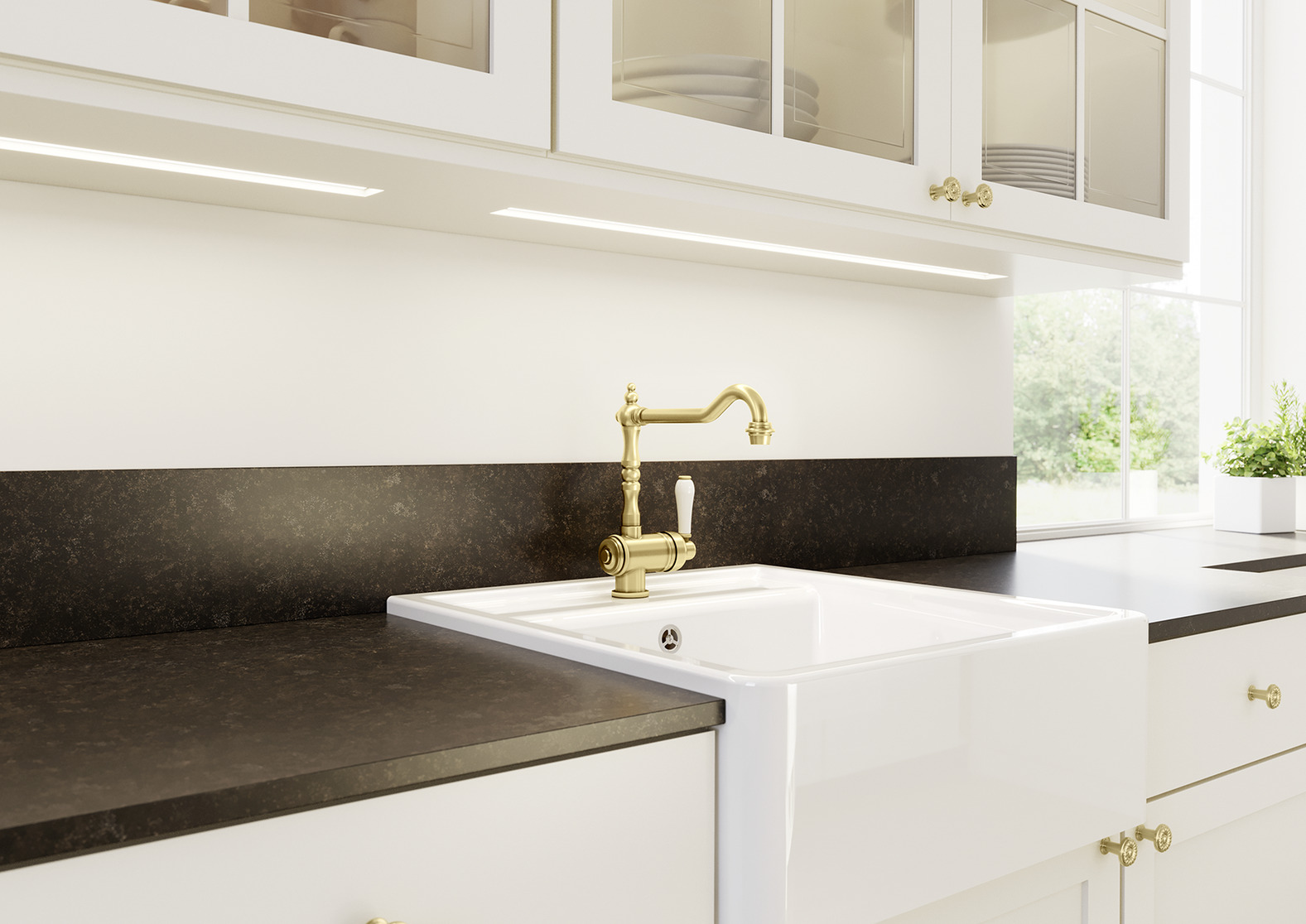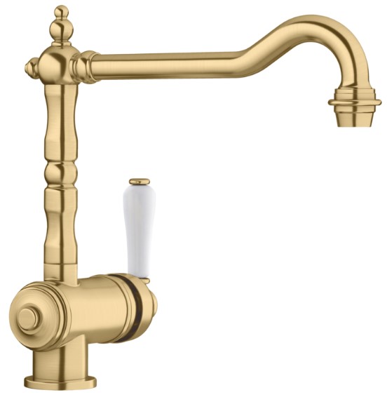 Смеситель Blanco Tradon — элегантный однорычажный кран в золотом исполнении, который подчеркнёт стиль современной кухни. Его тёплый металлический оттенок делает интерьер более роскошным, но при этом сдержанным.
