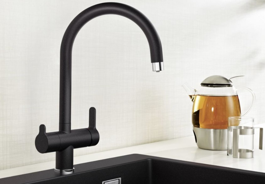 Рычаг для включения фильтрованной воды применяется в современных комбинированных смесителях, где из одного и того же излива подается и водопроводная, и питьевая вода. Такие смесители типа «два в одном» отличаются от обычных тем, что имеют не два подключения, а три, где третье соединяет смеситель с фильтром. Очищенная вода подается по изолированной трубке, проходящей внутри излива. Для удаления накипи, солей металлов, микроорганизмов и прочих вредных примесей могут применяться различные типы фильтров. Проточные фильтры устанавливаются под мойкой и включают несколько картриджей, которые необходимо менять по мере использования. С их помощью можно избавиться от таких примесей, как железо, хлор и многие другие. Устройства с системой обратного осмоса оснащаются диффузором, включающим картриджи для предварительной очистки и осмотическую мембрану, задерживающую практически все вредные примеси.