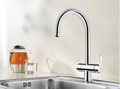Отдельный канал для фильтрованной воды — опция, которой оснащаются многие смесители с фильтром. Это экономичный, удобный вариант, не требующий установки дополнительного смесителя или покупки бутилированной воды. Монтаж его будет таким же, как монтаж обычного крана, но потребуется, кроме подключения к горячей и холодной воде, еще одно дополнительное подключение — к фильтру. Система фильтров может размещаться под раковиной, в кухонной тумбе, и соединяться со смесителем при помощи гибкой трубки. Проточные фильтры позволяют задерживать соли металлов, защищают от болезнетворных микроорганизмов. В зависимости от качества воды картриджи в фильтрах требуется менять каждый год или чаще. Еще более эффективны фильтры с системой обратного осмоса, которые не пропускают до 98% посторонних примесей.