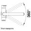 Поворотный излив означает, что вы сможете направить поток воды не только по центру, но и в сторону — и даже с раковины в ванну, если излив достаточно длинный. Угол поворота может быть разным, в зависимости от того получится сдвинуть кран на 180 или 360 градусов. С таким изливом проще мыть посуду и продукты, крупные предметы.