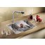 Высота излива — один из важнейших параметров, которые необходимо учитывать при выборе кухонного смесителя. Высотой называется расстояние от поверхности, на которой установлен смеситель, до его носика, то есть это, по сути, длина струи воды. Подбирать модель по высоте следует так, чтобы в раковину без труда помещались любые емкости, которыми вы пользуетесь, включая большие кастрюли и высокие вазы, а вода при ударе о дно раковины не разбрызгивалась во все стороны. Чем больше высота излива, тем глубже должна быть раковина.