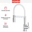 Внутри крана помещается шланг, который можно растянуть, чтобы достать струей воды до второй чаши мойки или тщательно сполоснуть посуду.