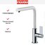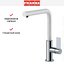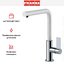 Конструкция однорычажного типа обеспечивает интуитивно понятное управление температурой и напором воды одной рукой. Высота смесителя — 29 см, высота излива 26,1 см и длина сопла 21,2 см дают достаточный запас пространства для наполнения высоких кастрюль и комфортной мойки крупной посуды. Угол поворота излива 360° предоставляет полный радиус действия, что особенно удобно при установке возле двускатной мойки или при необходимости поворачивать излив в разные направления.